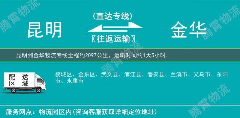 歡迎來電咨詢昆明到金華物流專線相關(guān)信息,天天發(fā)貨,全程3-7天可將您的貨物送至金華全市:蘭溪市、婺城區(qū)、義烏市、永康市、武義縣、浦江縣、金東區(qū)、磐安縣、東陽市、。